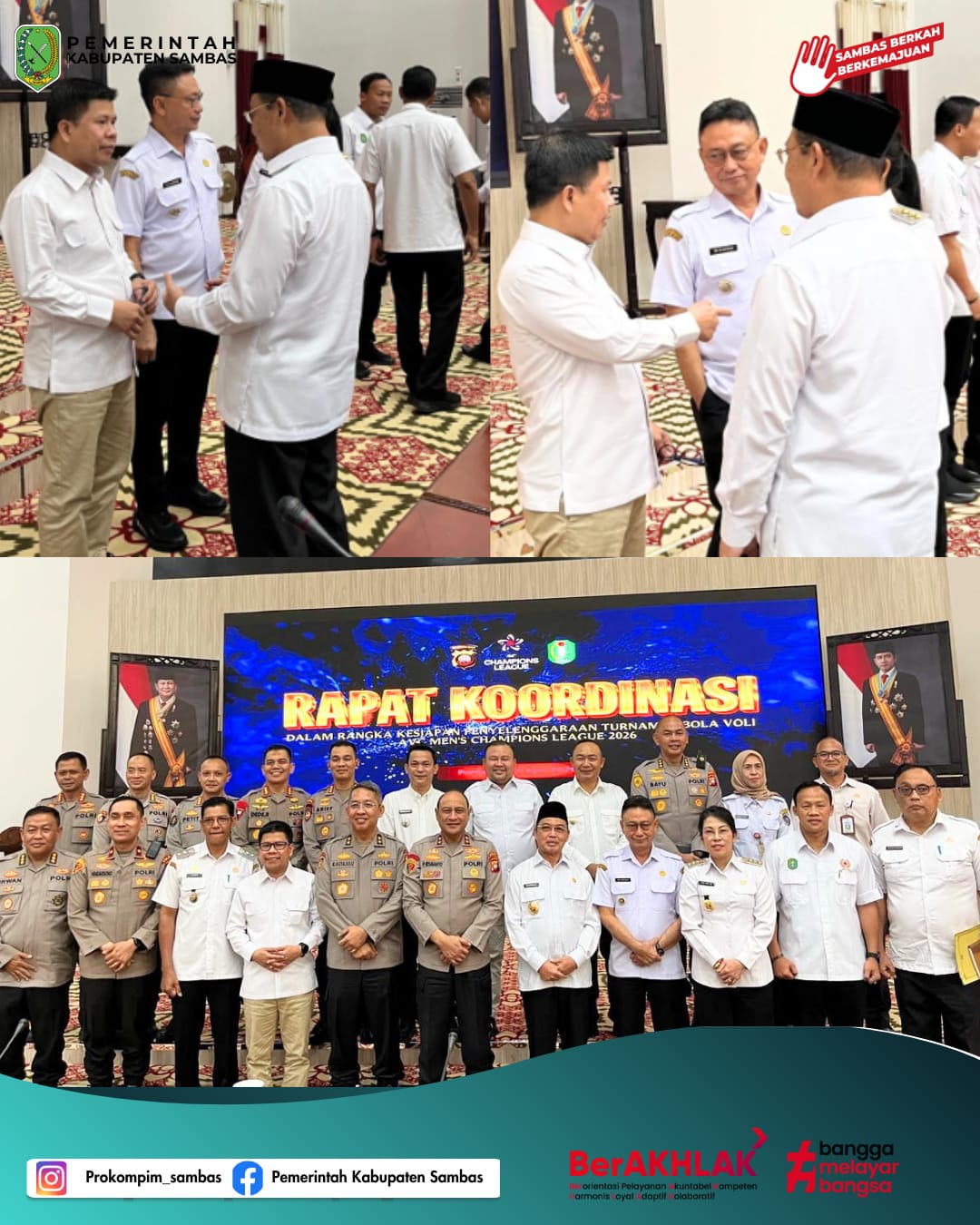 Bupati Sambas H. Satono, S. Sos. I. MH menghadiri Rapat Koordinasi Penyelenggara Turnamen Bola Voli AVC Men’s Champions League 2026 di Balai Petitih Kantor Gubernur Kalbar. Rabu 15 April 2026.
